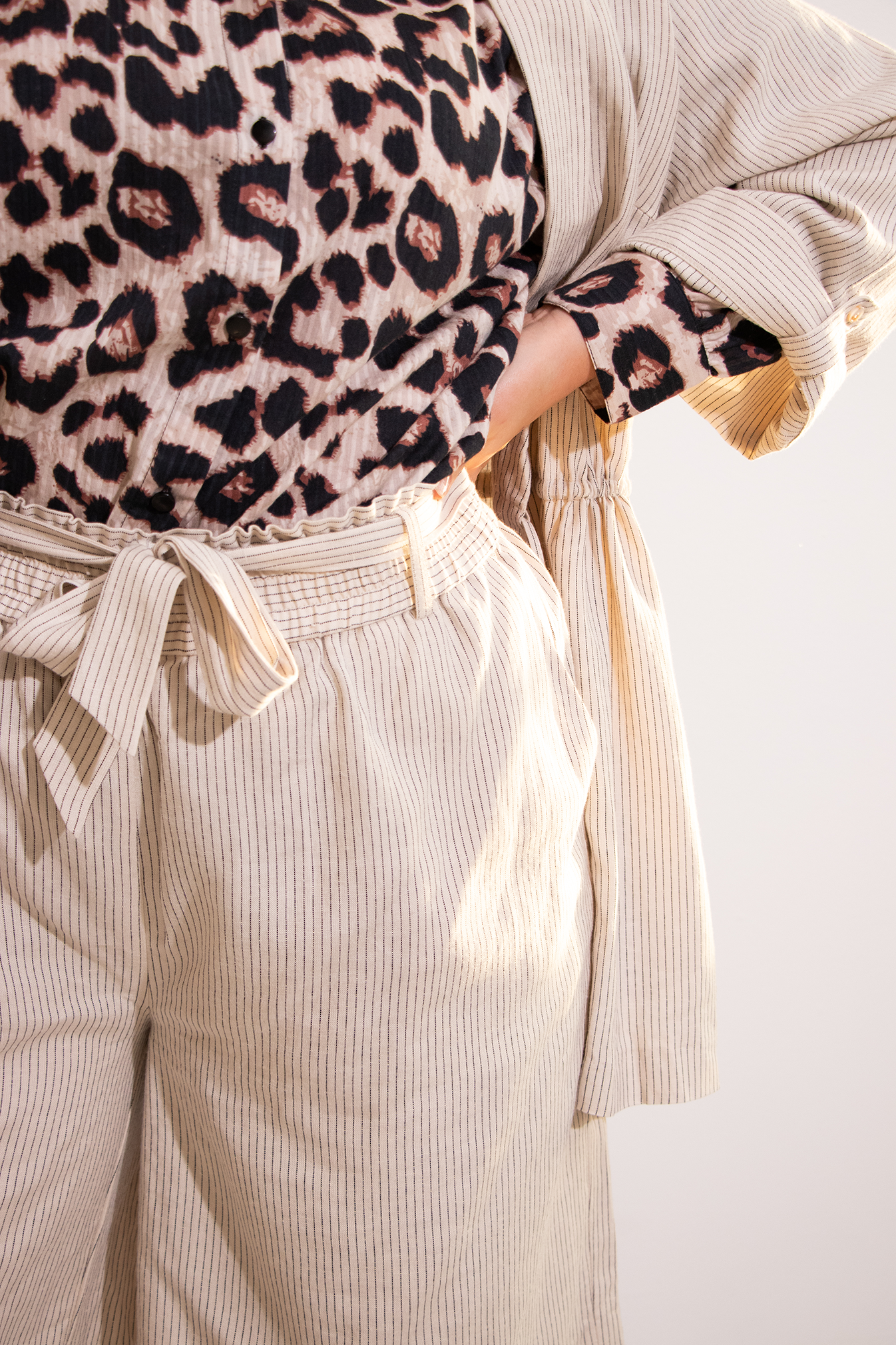 Djurtryck kan vara svåra att styla ibland. När du bär en blus med djurtryck är hemligheten att hålla resten av din outfit enkel för att balansera det. Neutrala färger och flödande tyger kompletterar alltid safari-temat och är perfekta för sommaren. Här kan du se ett mer klassiskt och feminint sätt att styla det vågade trycket. För att fullända looken kan du lägga till några klacksandaler och stora solglasögon. Ett perfekt sätt att få en sval och lekfull look.